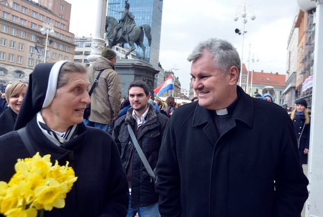 Na prosvjed se odazvao i velik broj svećenika i drugih visokih predstavnika Katoličke crkve u Hrvatskoj. Došao je u hrvatskom narodu vrlo popularan i neustrašiv biskup Vlado Košić, a u jednom sam trenutku vidio rektora Hrvatskog katoličkog sveučilišta prof. dr. sc. Željka Tanjića, koji je danas nedvojbeno najaktivniji teolog i branitelja interesa hrvatskog naroda i Katoličke crkve. Nema nikakve dvojbe kako su u Katoličkoj crkvi u Hrvatskoj svjesni da je njezina opstojnost danas u većoj opasnosti nego što je bila i u najtvrđe vrijeme komunizma. Kad bi soroševci i pripadnici drugih tajnih svjetskih organizacija uspjeli uništiti Crkvu u Hrvata, bilo bi to ravno uništenju i propasti hrvatskih obitelji i hrvatskog naroda, što i jest glavni cilj usvajanja raznih multilateralnih konvencija poput Istanbulske konvencije. Dan nakon prosvjeda na Trgu bana Jelačića Zagrebačka nadbiskupija objavila je priopćenje u kojem je dala snažnu potporu prosvjedu protiv usvajanja Istanbulske konvencije.