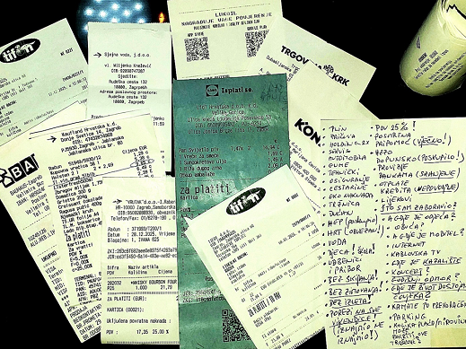 Oprostit ćete mi na „švrakopisu“ kod tog popisa u verzalu (penkala me izdaje na minusu), a malo mi se tresu i prsti priznajem. Što od straha, što od zime. Jutros je kod mene bio minus trinaest, a kod vas? Zrakom plovi patka? Da vam budem iskren (obožavam tu frazu priznanja) imam i treću fotku. Tako vam je to kod mene oduvijek - volim fotografirati. Naći ćete sigurno neki izvorni latinski naziv za tu boleštinu. Pa vam ja, znate, u slobodno vrijeme snimam račune. Buljim u njih kao da će mi novac biti vraćen. Buljakam satima i danima.