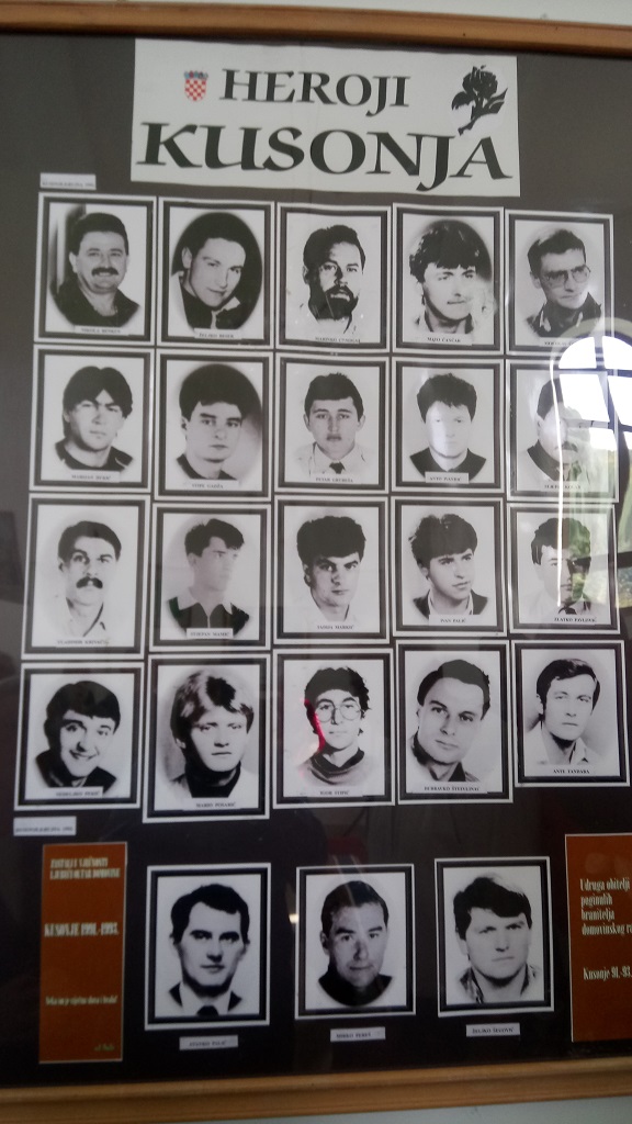 Nakon svete mise, na putu za Španovicu, hodočasnici su se nakratko zaustavili u Kusonjama te u spomen parku pred kapelicom položili vijence za 20 branitelja, zvjerski pogubljenih u četničkoj zasjedi u akciji oslobađanja Kusonja kraj Pakraca 8. rujna 1991. godine. Njihova okrutno izmasakrirana tijela ekshumirana su 29. siječnja 1992. godine. Na drugu obljetnicu pogubljenja 8. rujna 1993., roditelji žrtava došli su puni boli i tuge, s cvijećem i svijećama na mjesto ovog zločina, ali četnici su im podmetnuli minu, pa su u eksploziji na komemoraciji smrtno stradale još tri osobe, više ih je ranjeno a majka Zorica Posarić teško je ranjena u noge i od tada je u invalidskim kolicima. Danas se u Kusonjama nalazi kapela Male Gospe i spomen područje.