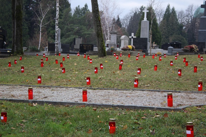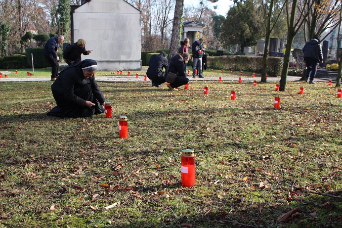 Nakon održanih govora, zapaljeno je na livadi oko groblja, 550 svijeća za pokojnike koji leže na tome mjestu.