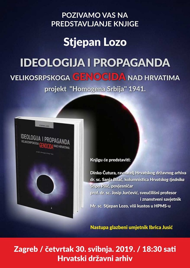 Poziv Detalji Objavljeno: Srijeda, 29 Svibanj 2019 15:26 fShare Tweet na predstavljanje knjige 'Ideologija i propaganda velikosrpskog genocida nad Hrvatima' autor Stjepan Lozo u Zagrebu u Hrvatskom državnom arhivu u četvrtak 30. svibnja 2019. u 18 i 30 sati. View the discussion thread. blog comments powered by DISQUS back to top Prethodno Sljedeće