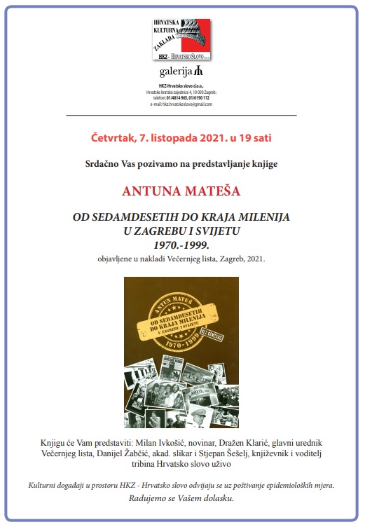 Poštovani, srdačno Vas pozivamo na predstavljanje knjige ANTUNA MATEŠA: