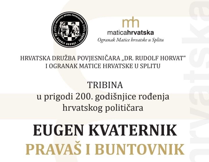 Povodom 200 godina rođenja hrvatskog velikana Eugena Kvaternika, Ogranak Matice hrvatske u Splitu i Hrvatska družba povjesničara "Dr.