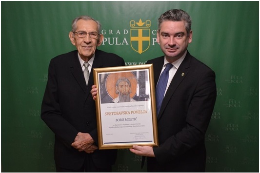 Vijeće srpske nacionalne manjine Istarske županije uručilo je tada pulskom gradonačelniku Borisu Miletiću Svetosavsku povelju. Uz zahvalu za dugogodišnju potporu i podršku u radu, Povelju su gradonačelniku uručili predsjednik Koordinacije Srba u Istri Radomir Janković i predsjednik Vijeća srpske nacionalne manjine Istarske županije Milan Rašula.