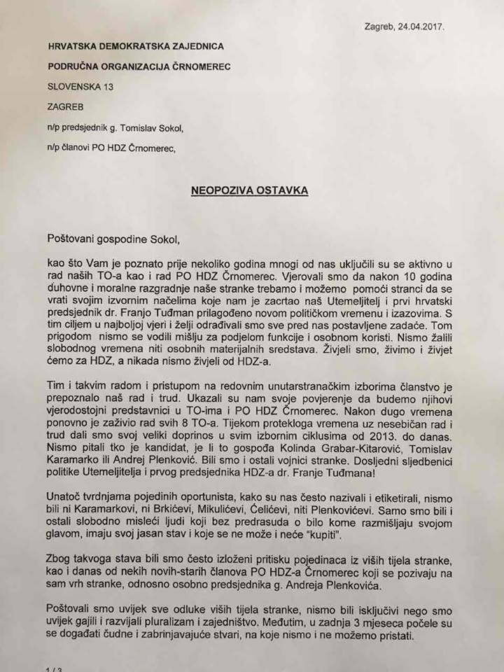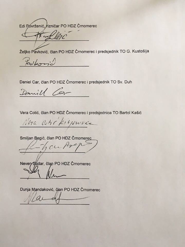 Ostavke četiri predsjednika Temeljnih ogranaka te dužnosnika u Područnom odboru HDZ-a Črnomerec
