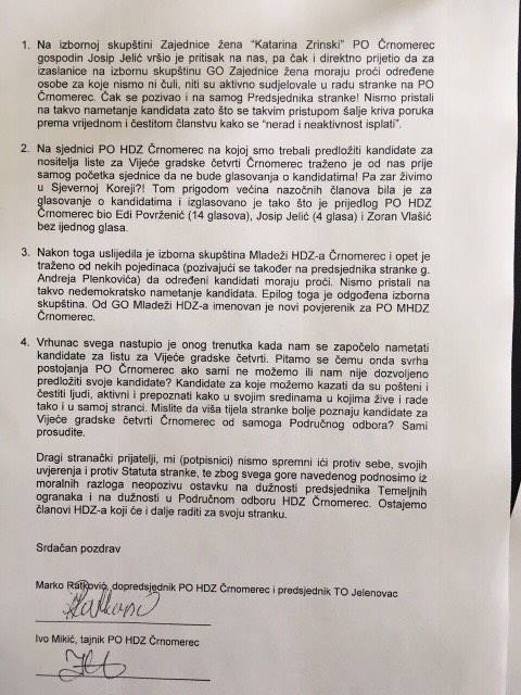 Jedan od razloga neopozive ostavke je nametanje izbora izaslanica Zajednica Žena Katarina Zrinski PO Černomerec na Izbornoj skupštini. Naime, Josip Jelić pozivao se na Andreja Plenkovića, te nametao volju izaslanicama kroz imena koja moraju biti izabrana za Izborni sabora Zajednice žena HDZ-a Katarina Zrinski.