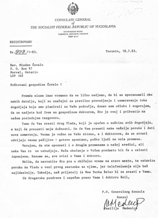 Jedno što je ovdje vrlo jasno jest da je ovaj zlikovac morao biti vrlo cijenjen suradnik jugokonzulata, jer kako bi on drukčije mogao doći u posjed službenog papira - ‘headletter’ - jugokonzulata?