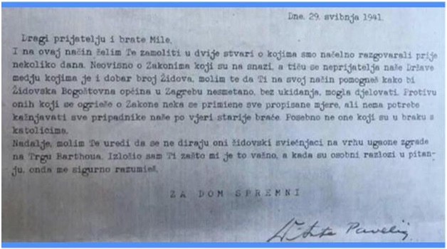 Ali očito je da su Židovi i u izboru pravednika vrlo selektivni. Oni vrlo dobro znadu da častne sestre i svi drugi koji su u Nezavisnoj Državi Hrvatskoj spašavali Židove ne bi to mogli učiniti da im hrvatske vlasti nisu u tome tajno pomagale ili, kad to nije bilo moguće, gledale kroz prste. To svjedoči i ovo pismo, pa pitam zašto i njegov autor ne bi mogao biti proglašen pravednikom?