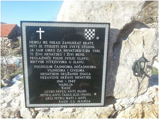 Spomen ploča braniteljima NDH u Raosima kod Imotskog
